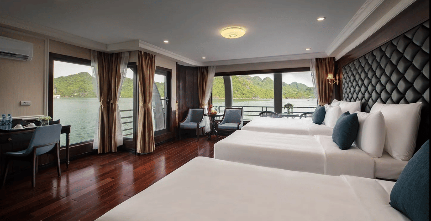 During your time on board, embark on a flavorful journey with us. Each day aboard Venus Cruises, you'll savor exquisite Vietnamese cuisine crafted by our expert chefs or try your hand at traditional dishes in our Vietnamese cooking classes. Our menu also features a range of Asian and European options to suit every palate. Use this voyage as an opportunity to prioritize your well-being. Venus Cruises offers a fully equipped fitness center with modern cardio and strength machines. Begin your mornings with revitalizing Tai Chi sessions to boost your energy for the day ahead. Unwind at our spa with soothing natural therapies and massage treatments. Whether it's sunrise or sunset, enjoy the open sky and fresh sea breeze on our spacious sundeck – the perfect place to relax, recharge, and let your worries drift away.